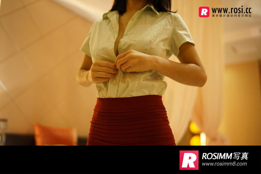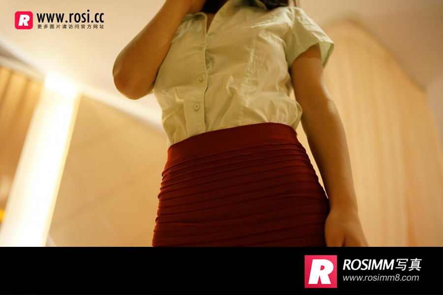 ROSI写真No.1676 短袖红色包臀短裙翘臀诱惑(3)
